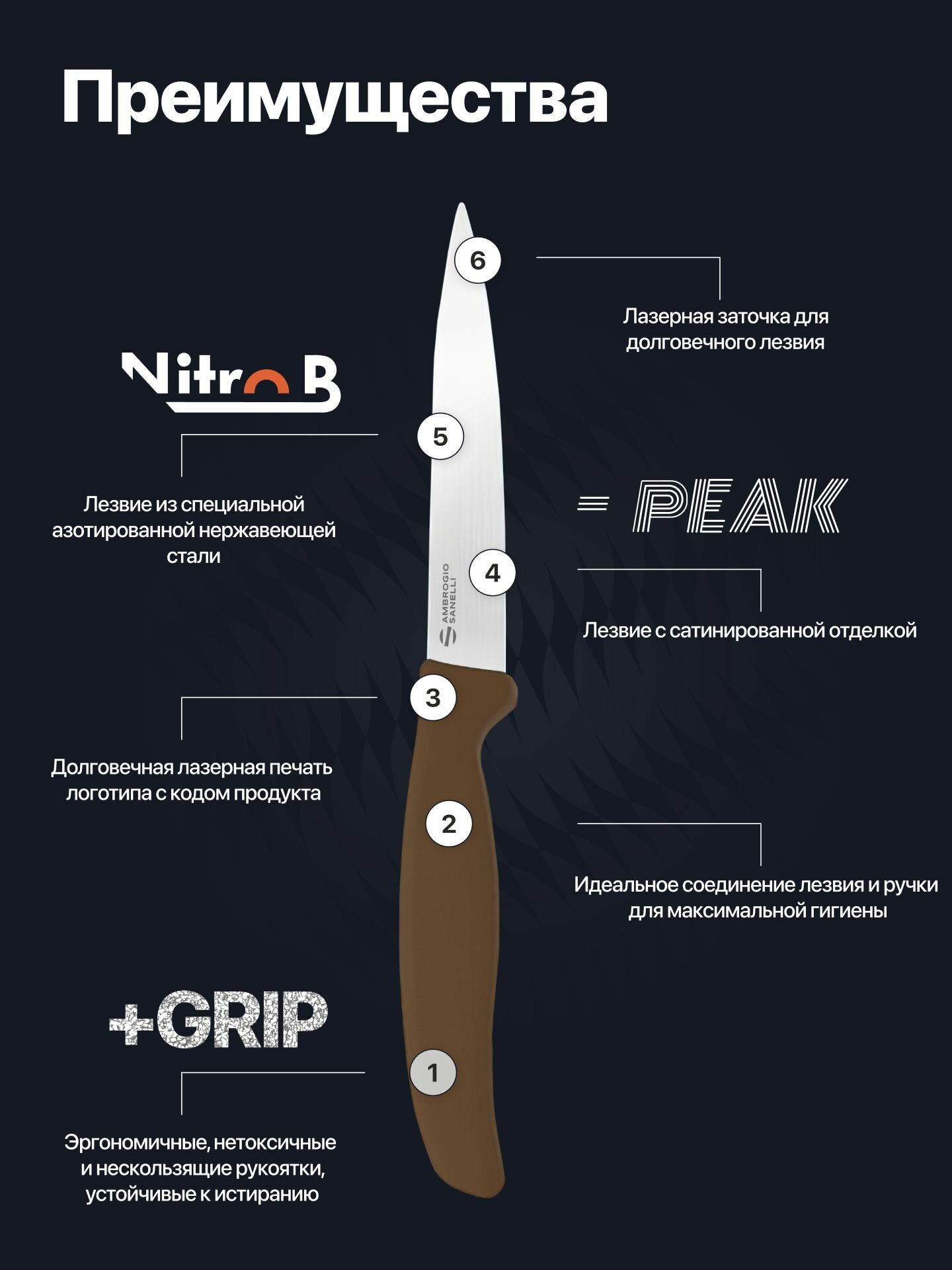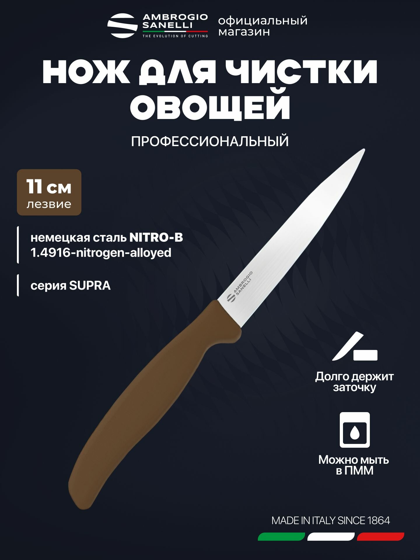 Нож для чистки овощей и фруктов 11 см профессиональный Sanelli Ambrogio ST82011N / коричневая ручка: сравнение цен, характеристики, фото, актуальное наличие и цены.