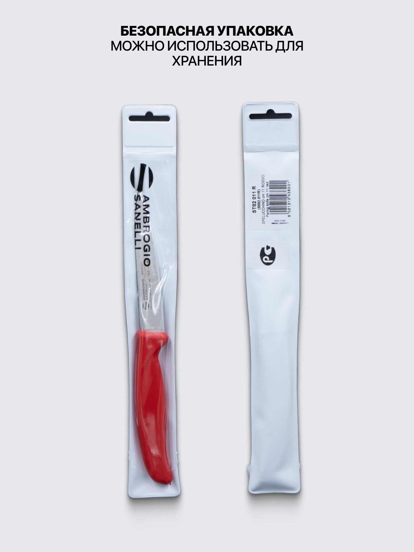 Купить Нож для чистки овощей и фруктов 11 см профессиональный Sanelli Ambrogio ST82011R / красная ручка с доставкой по всей России.