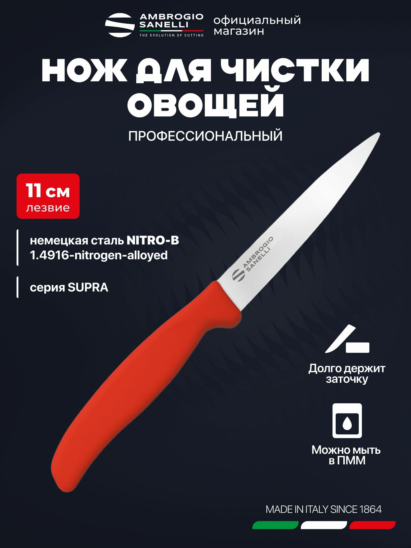 Нож для чистки овощей и фруктов 11 см профессиональный Sanelli Ambrogio ST82011R / красная ручка: сравнение цен, характеристики, фото, актуальное наличие и цены.
