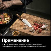 Нож для чистки овощей и фруктов Fiskars All Steel 7 cm (1062889) идеально подходит для очистки и нарезки мелких фруктов и овощей.