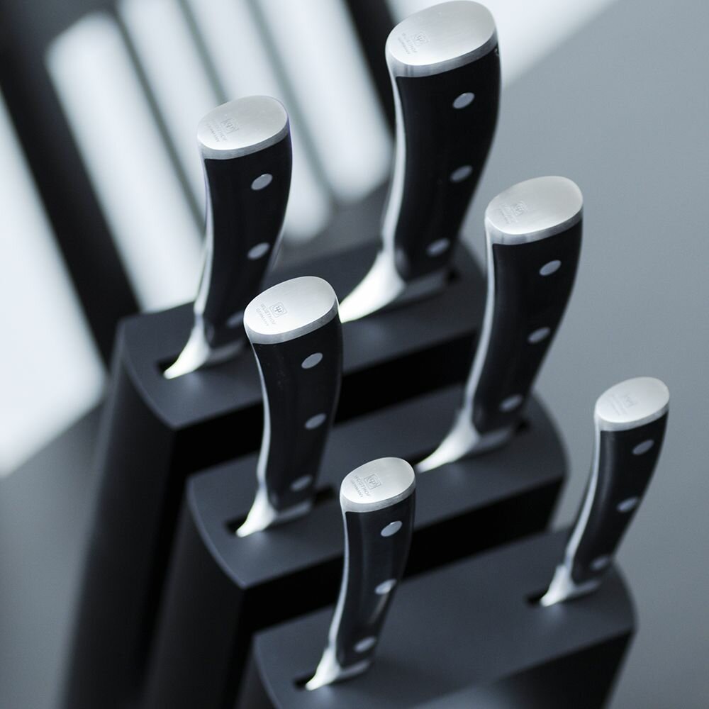 При производстве клинков серии CLASSIC ICON применяется фирменная технология PEtec, гарантирующая исключительную остроту лезвия. Хвостовик ножа идёт до самого конца ручки, являясь её частью. Такая конструкция исключительно надёжна, долговечна, и позволяет добиться идеальной балансировки ножа. Процесс изготовления ножей CLASSIC ICON состоит из различных операций — ковка, закалка, шлифовка. Все технологические процессы производятся в соответствии с самыми строгими стандартами качества. Результатом является уникальная твёрдость и исключительная прочность клинка. На лезвии каждого ножа выгравирован фирменный трезубец компании, место изготовления – SOLINGEN, а также уникальный код клинка, гарантирующий подлинность изделия. внимание! Используйте этот нож только по назначению, описанному здесь. Данный нож предназначен для обработки незамороженных пищевых продуктов и может быть использован исключительно в кулинарных целях.