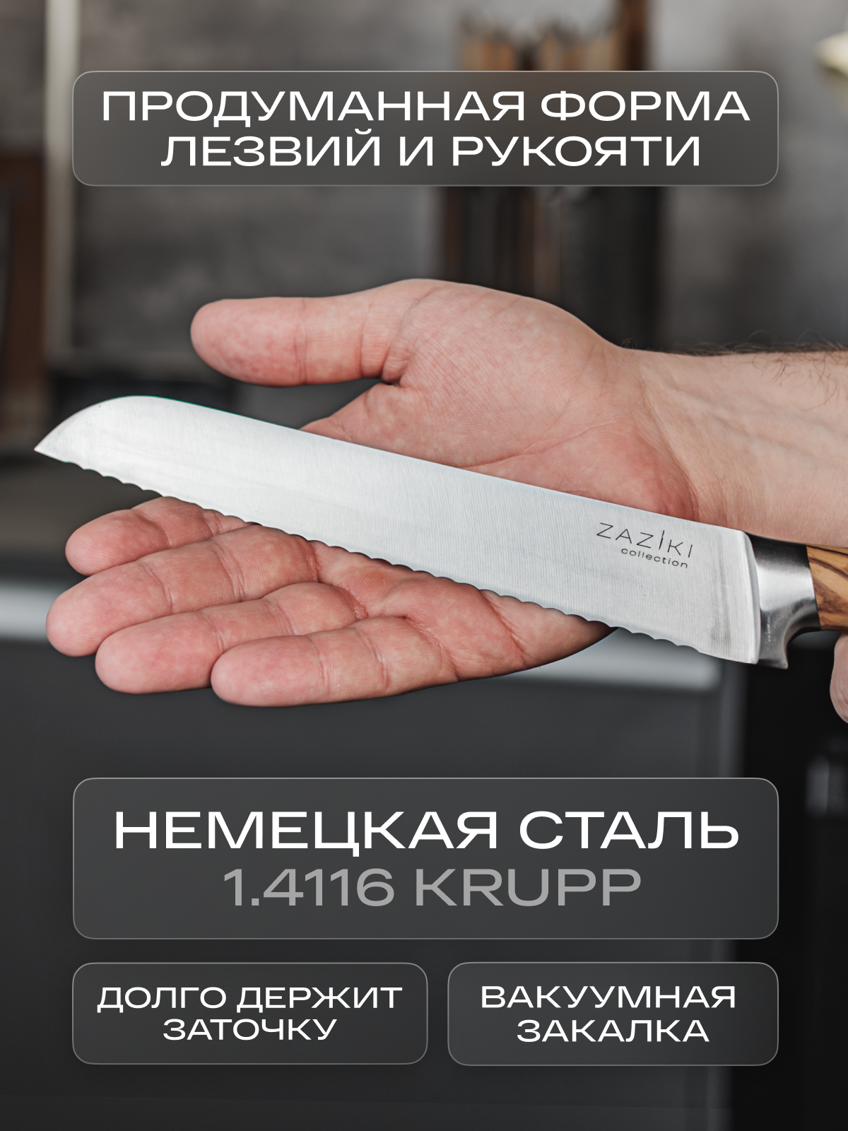 Купить Нож для хлеба Zaziki с зубчиками профессиональный, нержавеющая сталь с доставкой по всей России. Нож для хлеба Zaziki с зубчиками профессиональный, нержавеющая сталь: сравнение цен, характеристики, фото, актуальное наличие и цены.