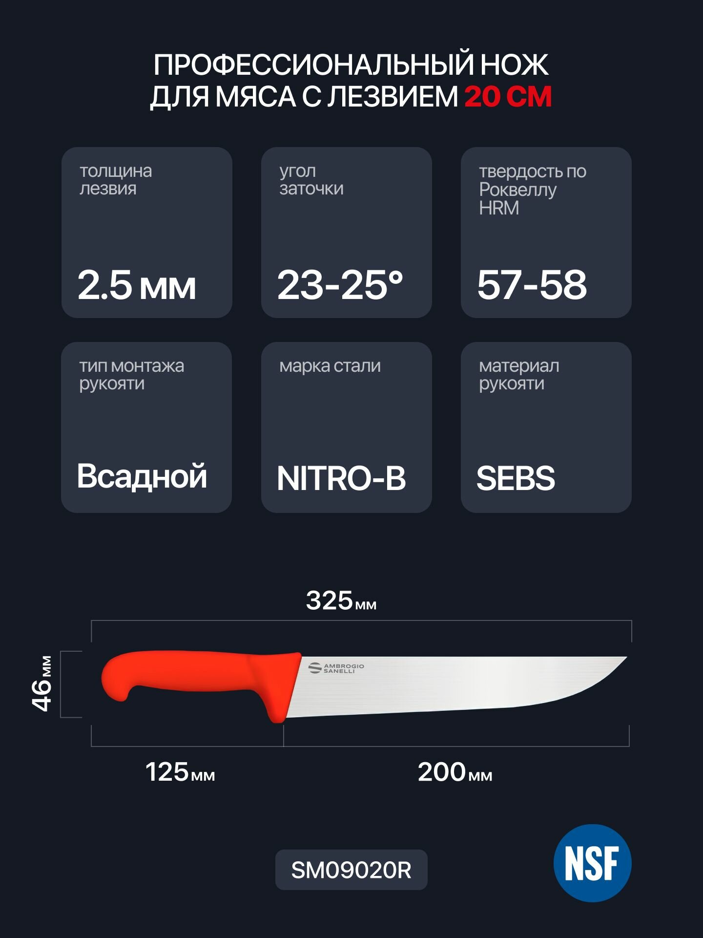 Нож для мяса 20 см профессиональный Sanelli Ambrogio SM09020R / красная ручка: сравнение цен, характеристики, фото, актуальное наличие и цены.