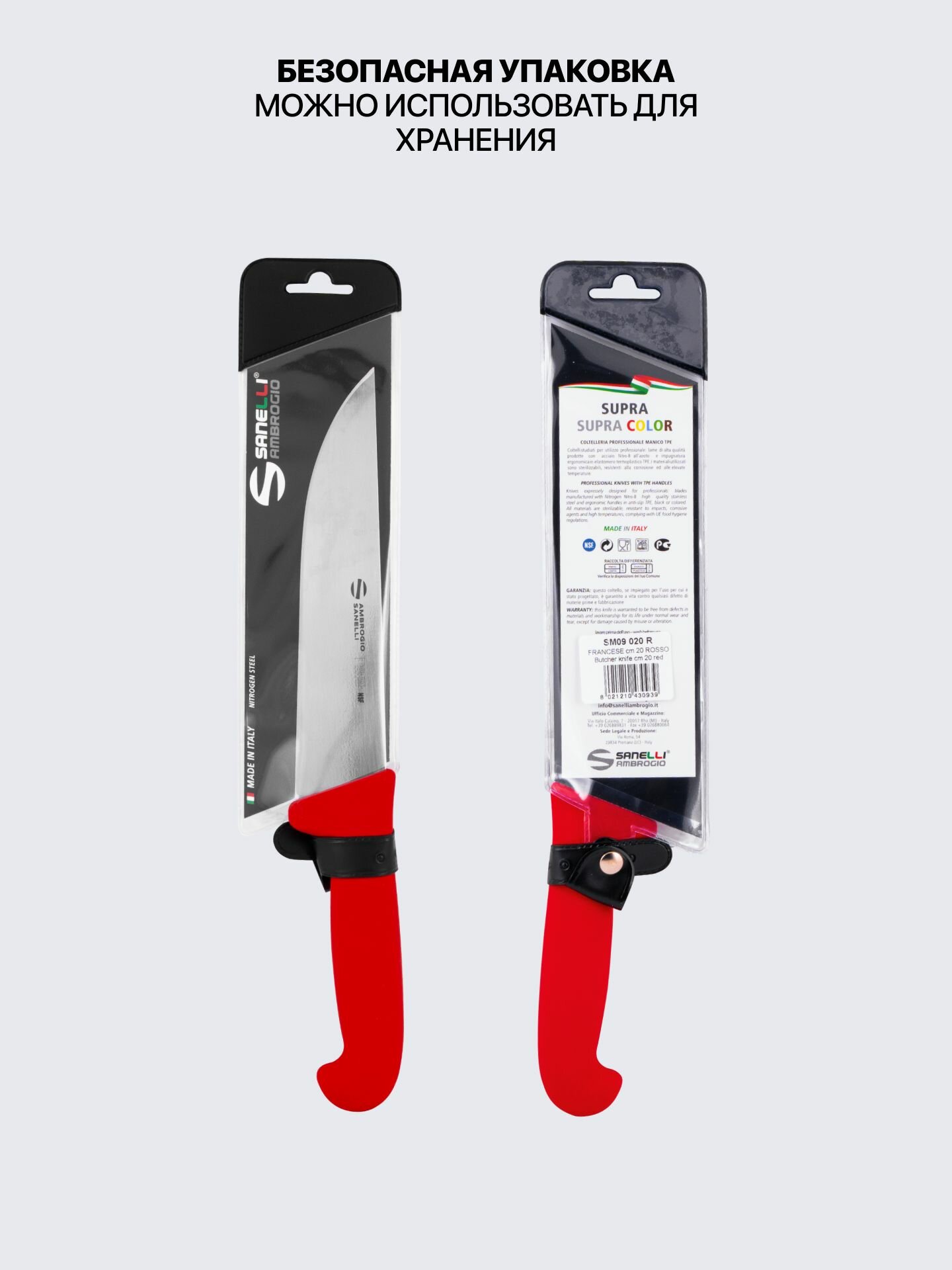 Купить Нож для мяса 20 см профессиональный Sanelli Ambrogio SM09020R / красная ручка с доставкой по всей России.