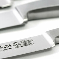 Рукоятка ножа изготовлена из стали, что делает его устойчивым к коррозии и обеспечивает комфортное использование. Угол заточки лезвия составляет 16 градусов, что позволяет легко и быстро нарезать продукты.