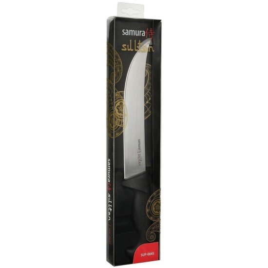 В коллекцию Sultan Pro бренда Samura входят оригинальные и надежные кухонные ножи в восточном стиле, произведенные из высокотехнологичной однослойной нержавеющей стали марки AUS-8 твердостью 58 HRC.