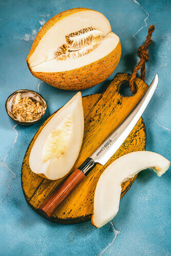 Нож Samura Okinawa имеет узкое длинное лезвие специальной формы (тонкое сведение режущей кромки) для тонкой нарезки мяса, рыбы, овощей, деликатесов. С его помощью легко отрезать тонкие аккуратные ломтики одним движением, не повреждая структуру волокон продуктов. Точно выверенная геометрия и безупречно острое лезвие обеспечат идеальный результат нарезки.