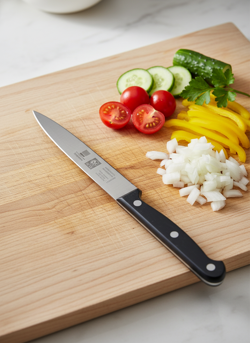 антибактериальное покрытие, мытье в посудомоечной машине, нескользящая ручка, серрейторная заточка