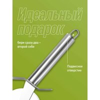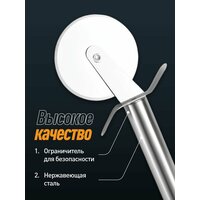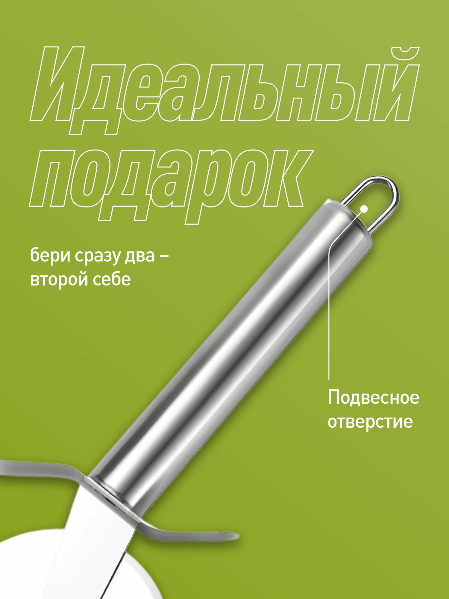 Резак для пиццы и лопатка в комплекте подойдут для ежедневного использования — это прочные и компактные принадлежности. Длина ножа 19,5 см оптимальна для работы и легко поместится в кухонный ящик. Универсальная пиццерезка заменит сразу несколько инструментов и сделает процесс приготовления более приятным и организованным.