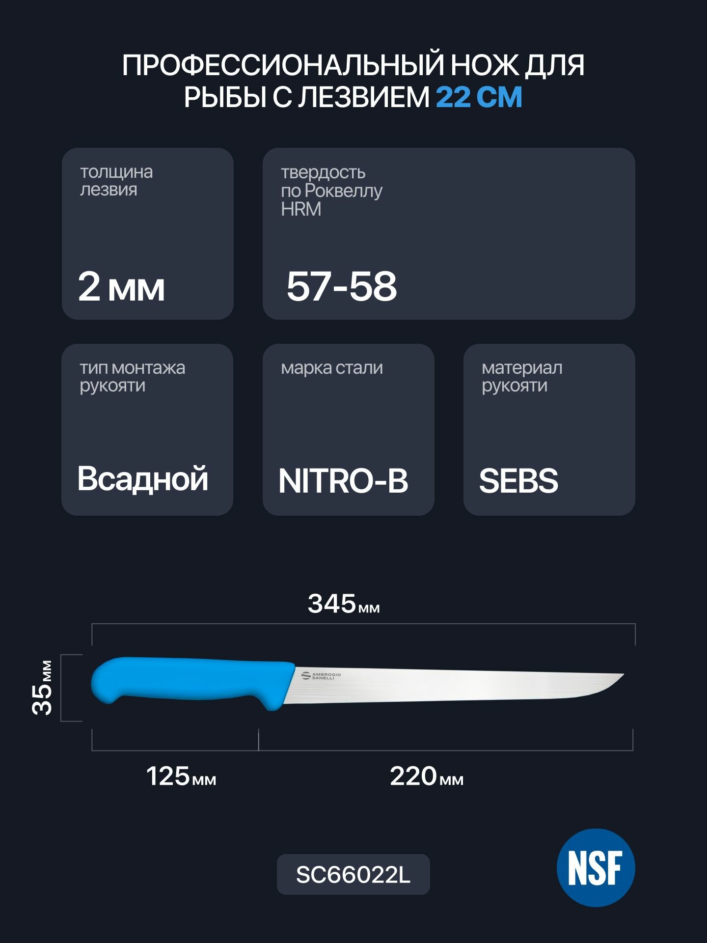 Нож для рыбы 22 см гибкий Sanelli Ambrogio SC66022L / синяя ручка / профессиональный филейный: сравнение цен, характеристики, фото, актуальное наличие и цены.