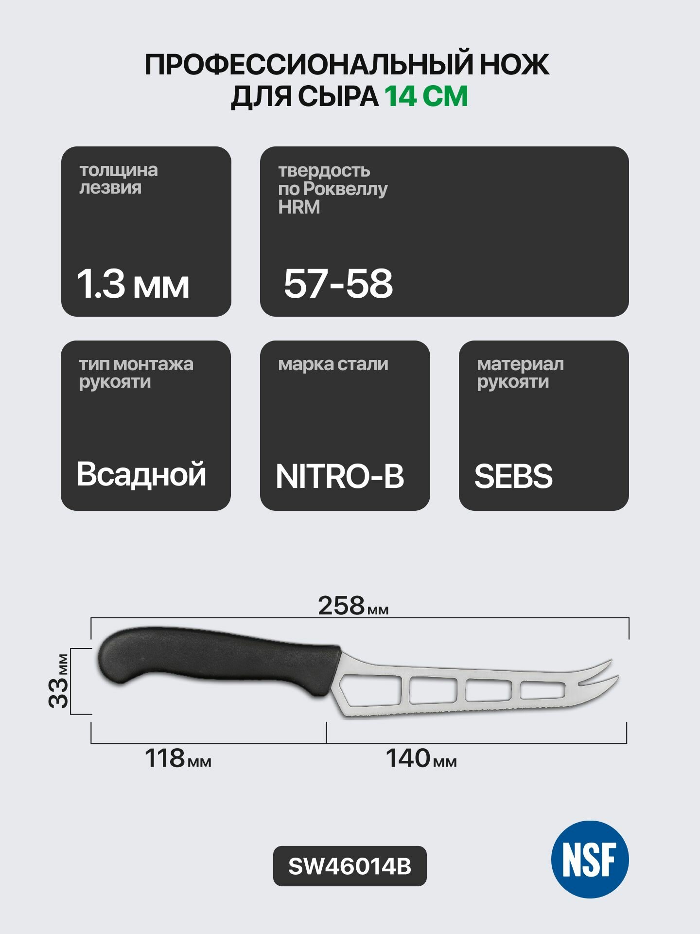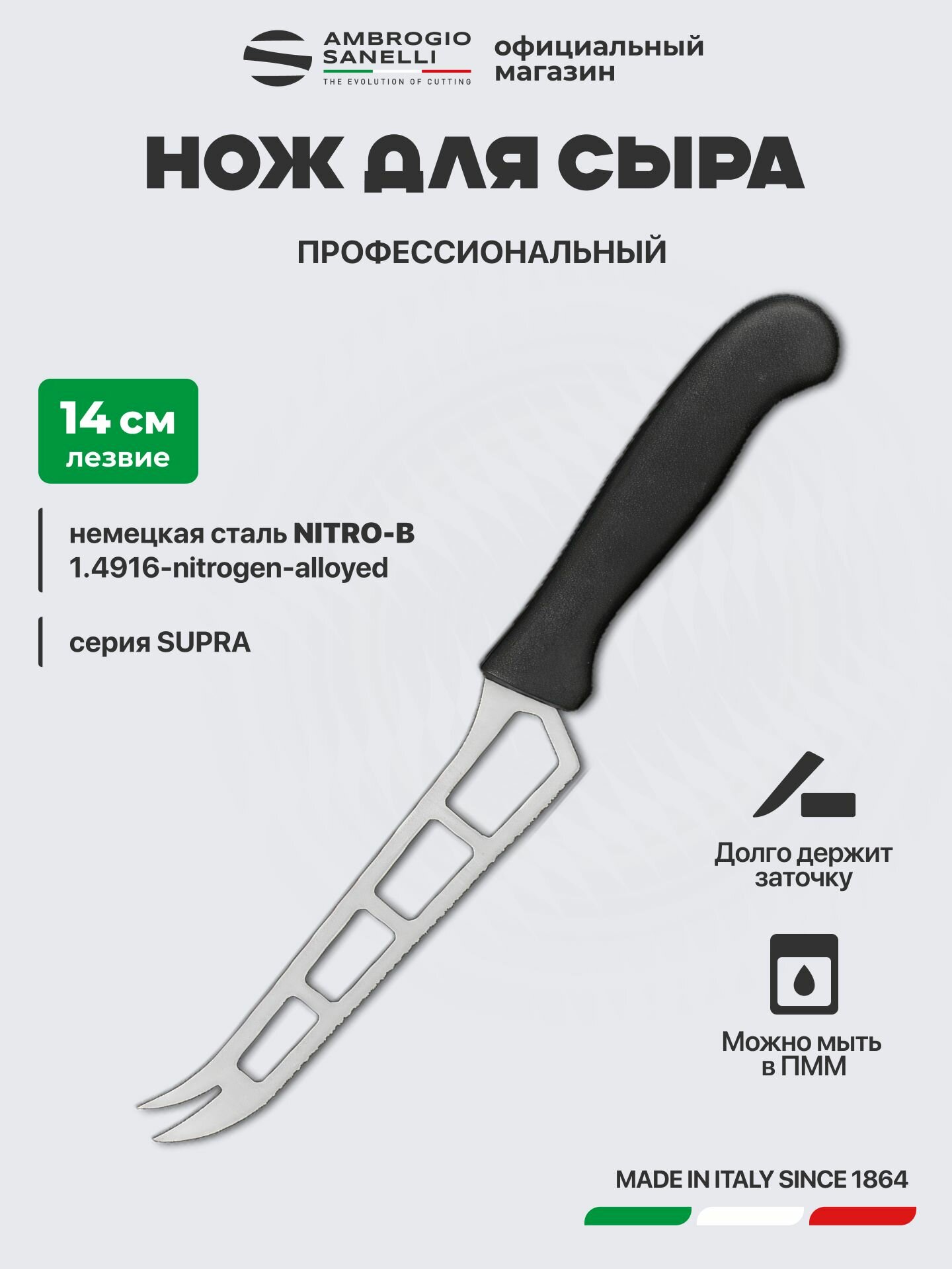 Купить Нож для сыра 14 см профессиональный Sanelli Ambrogio SW46014B / черная ручка с доставкой по всей России.