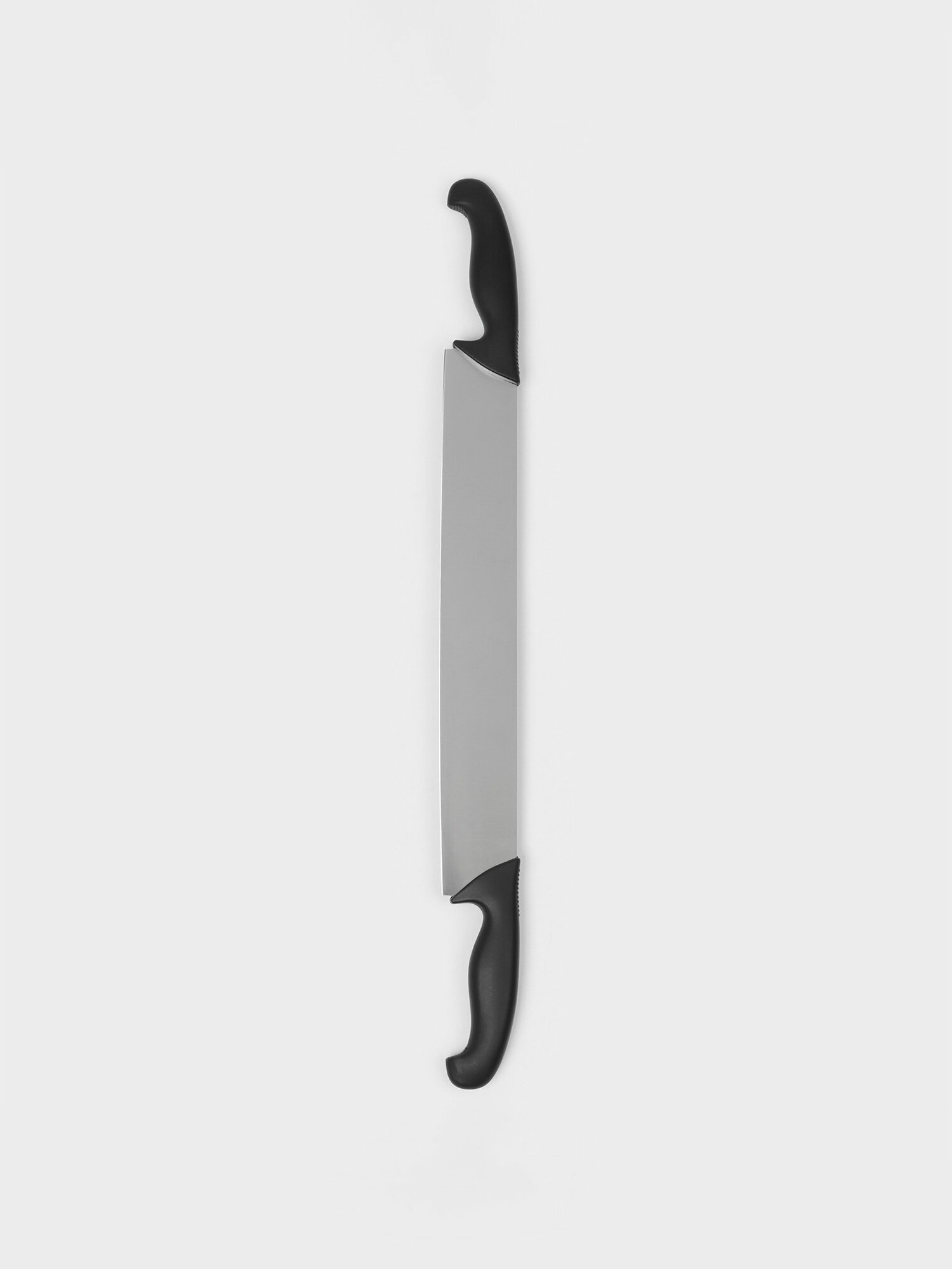 Купить Нож для сыра с двумя ручками Sharp, лезвие 36.3 см, нержавеющая сталь, чёрная ручка с доставкой по всей России.