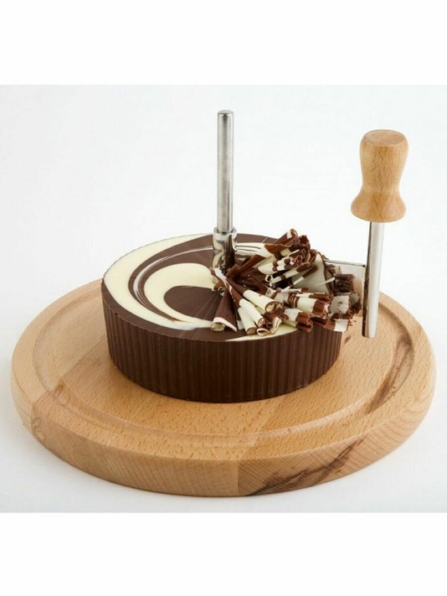 Нож для сыра Tete de Moine (Тет де Муан) жироль с крышкой, D 22 см, H 14,5 см, APS Нож Girolle (жироль) это простой инструмент для создания красивых цветочков из сыра Tete De Moine. У Вас не возникнет никаких проблем с использованием. Снимите лезвие и поместите сыр на металлический столб. Сыр достаточно мягкий, поэтому Вам не нужно прикладывать какие-либо усилия, чтобы толкнуть его вниз, на деревянное основание. Удостоверьтесь, чтобы сыр был надежно закреплен на маленьких металлических ножах в основании- Поместите лезвие ножа сверху и затем, придержите основание одной рукой и вращайте другой- Вам не нужно слишком сильно давить на лезвие, чтобы сделать сырные ломтики. Жироль с деревянной основой удобен и экономичен. Жироль также можно использовать для изготовления шоколадных розочек. В комплект входит прозрачная пластиковая крышка, от заветривания сыра в холодильнике Жироль можно использовать для изготовления шоколадных розочек.