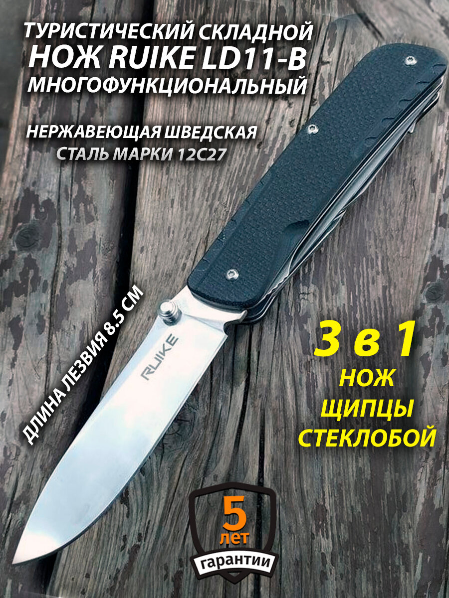 Нож EDC складной Ruike LD11-B туристический 3 в 1, плюс щипцы и стеклобой, лезвие 8.5 см. Шведская сталь, для туризма и кемпинга: сравнение цен, характеристики, фото, актуальное наличие и цены.
