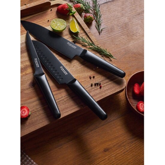- Покрытие черного цвета придает ножу современный и стильный вид.