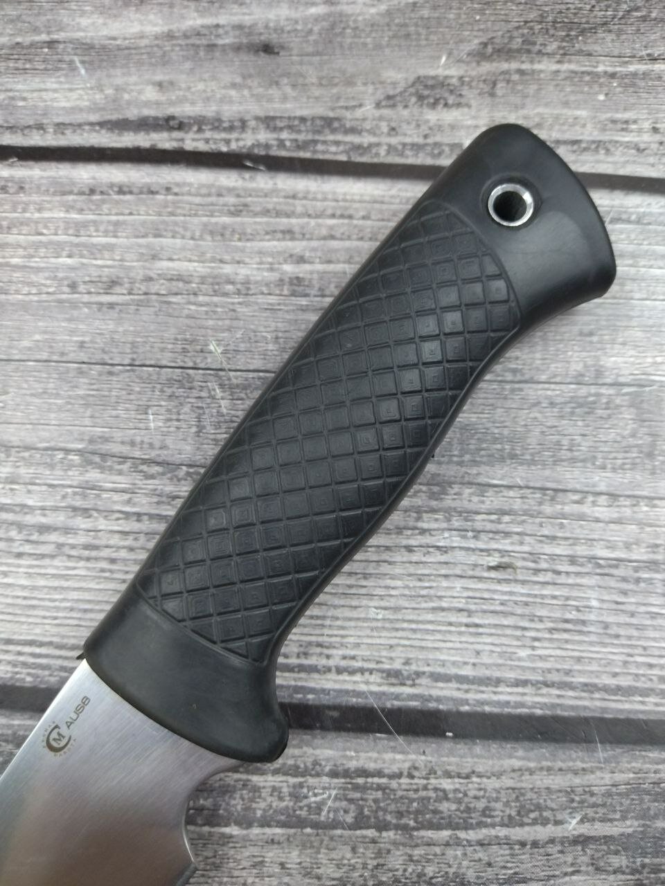 При изготовлении клинка использовалась сталь AUS 8, с твердостью которая составляет 54 - 56 HRC (Чем выше показатель, тем надежнее и долговечнее нож). При производстве рукоятки используется Elastron.