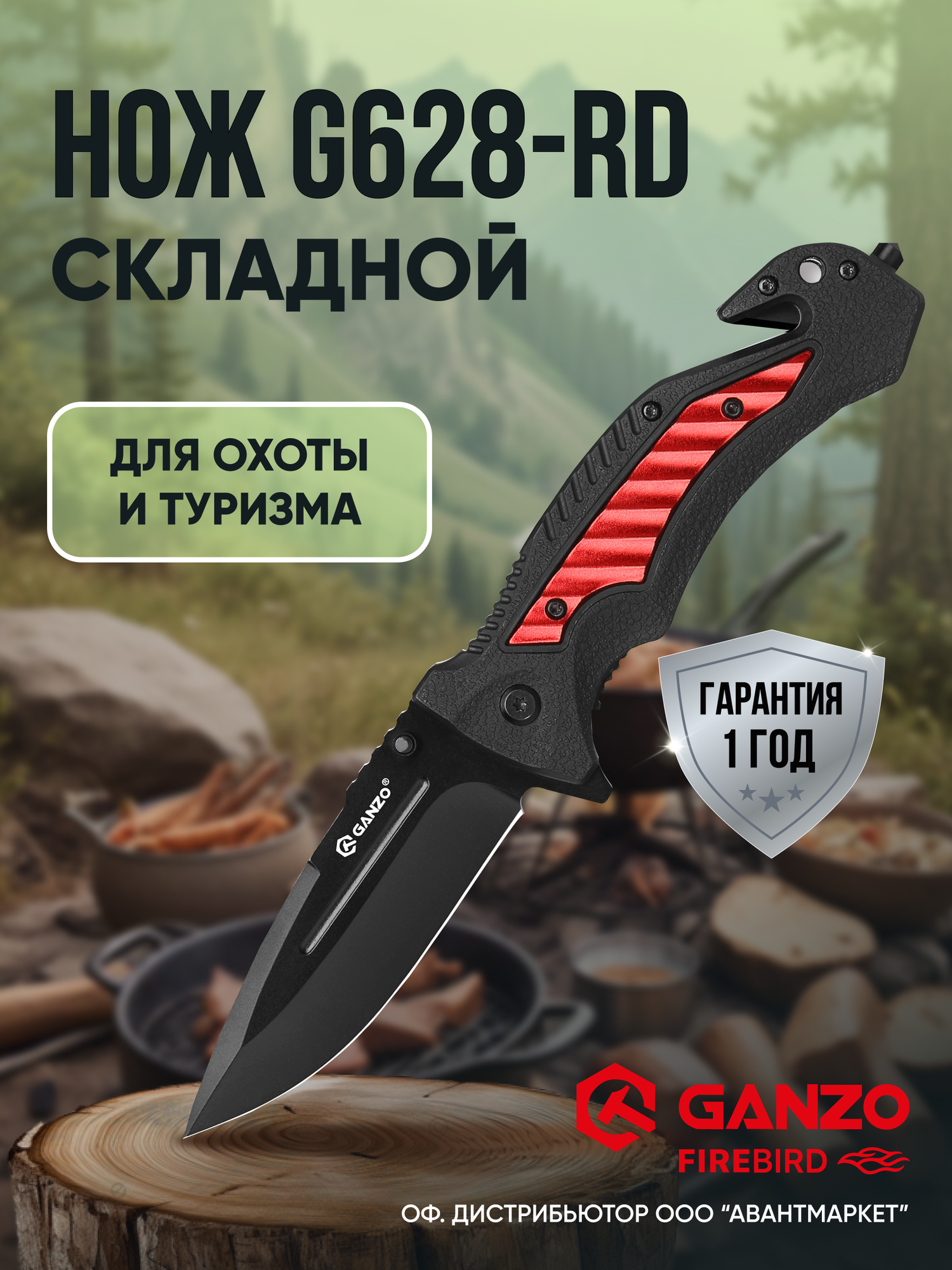 Складной туристический нож Ganzo G628-RD, рукоять из ПП и алюминия, с клипсой, черно-красный: сравнение цен, характеристики, фото, актуальное наличие и цены.