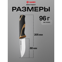 Фиксированный нож Ganzo можно взять с собой в поход, на охоту, на рыбалку или любую другую вылазку на природу. Лезвие изготовлено из закаленной нержавеющей стали. Рукоять не скользит в руке, благодаря прорезиненному материалу и насечкам на поверхности. Длина ножа вместе с ножнами составляет 20,5 сантиметров.