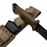 Твердость закалки – 57-58 HRC, Тип клинка – Drop Point (Дроп поинт), Материал рукояти: нейлон, армированный стекловолокном, c накладкой из термопластичной резины; Материал ножен: пластик, баллистический нейлон