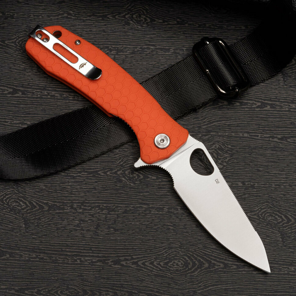 Honey Badger Leaf D2 L легкий складной нож, который отлично подойдет для постоянного ношения в кармане. Легко раскрывается с помощью флиппера или отверстия для большого пальца.