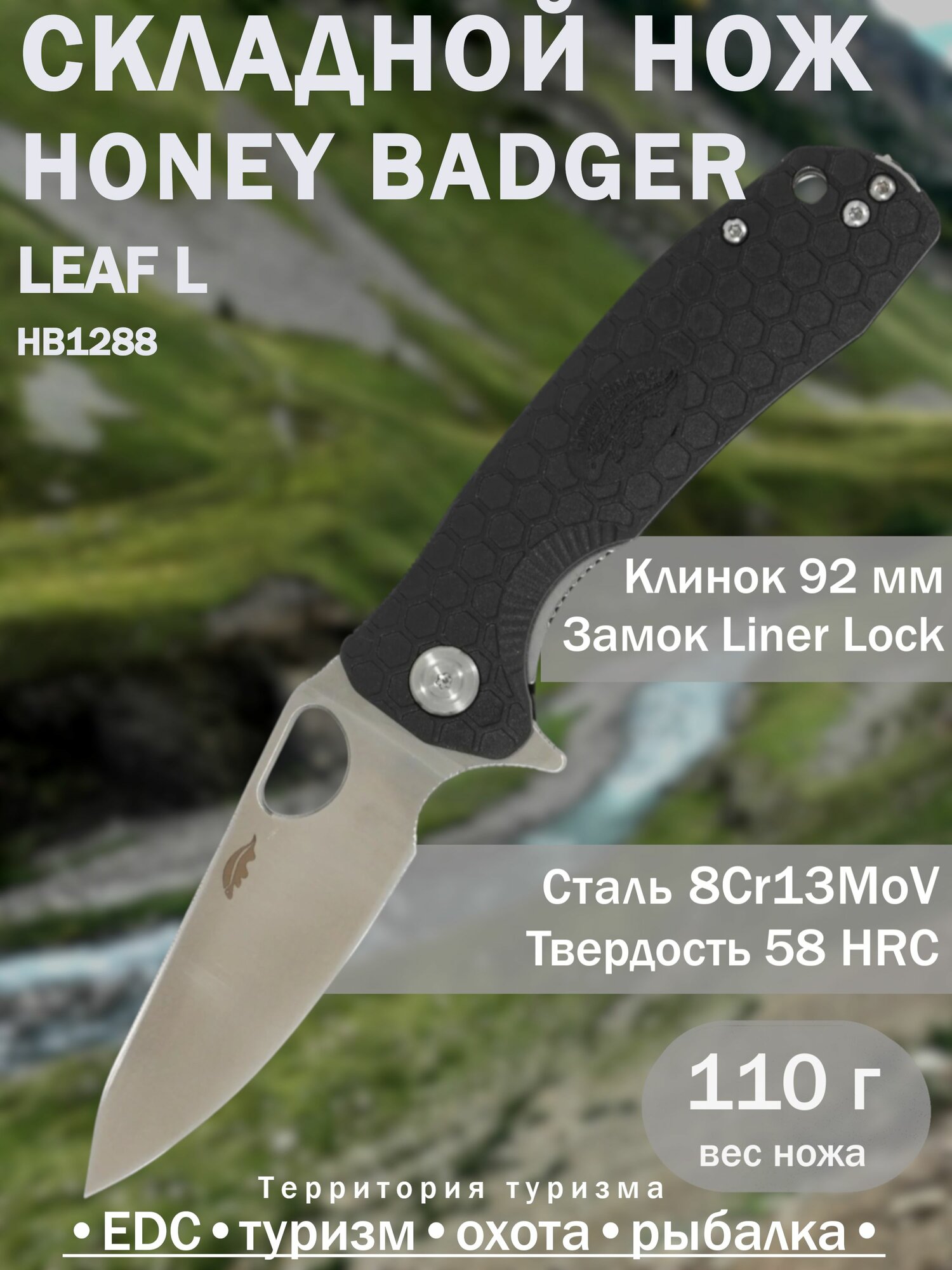 Honey Badger Leaf L – легкий складной нож, который станет идеальным решением для повседневного ношения в кармане. Открытие клинка осуществляется с помощью удобного флиппера или специального отверстия для большого пальца.