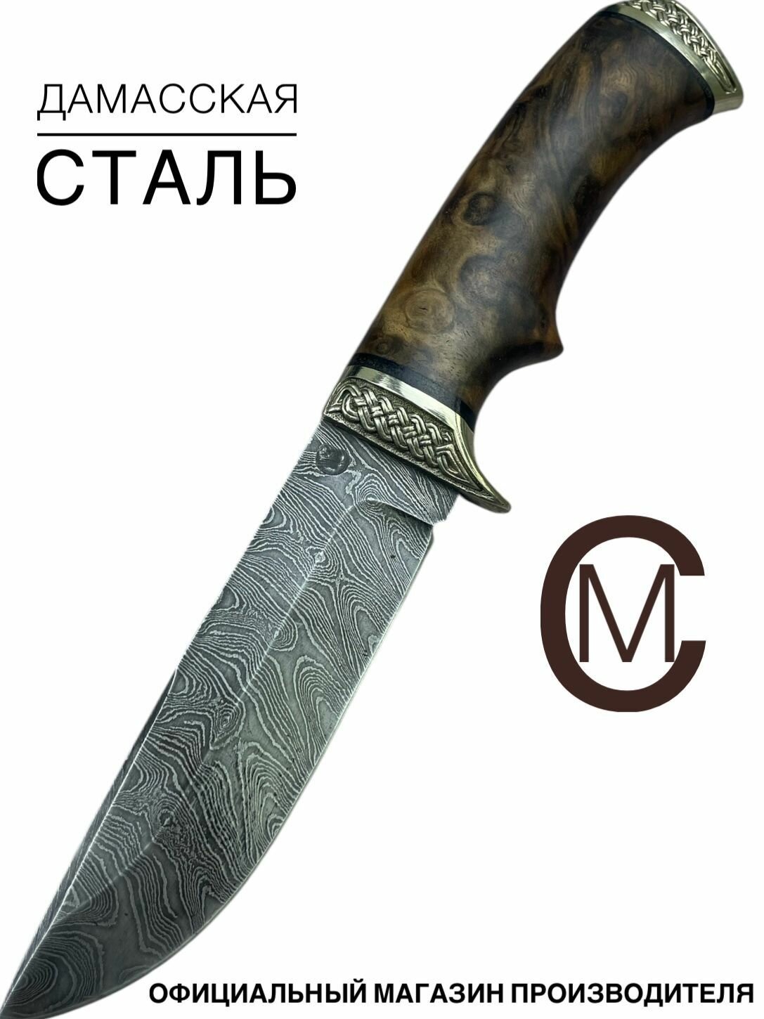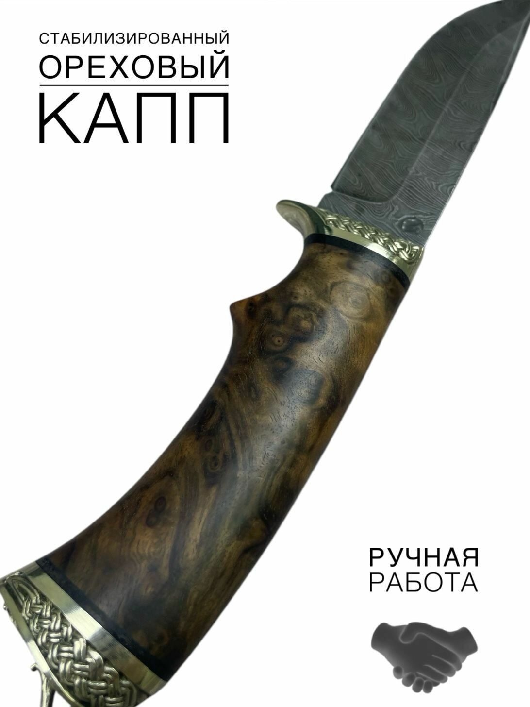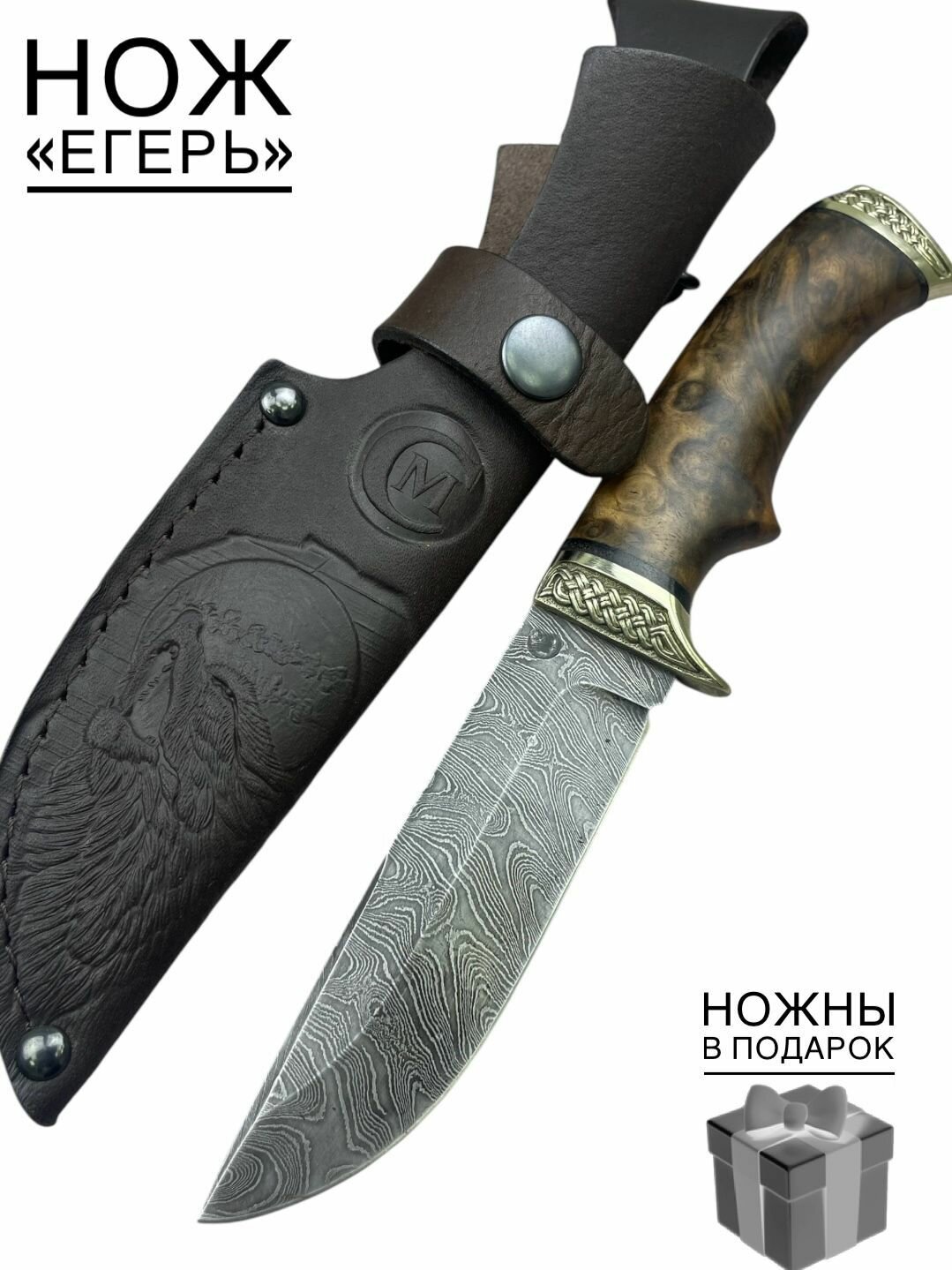Нож из дамасской стали Егерь, рукоять литье мельхиор, ореховый кап, ножны из натуральной кожи. Мастерская Семина: сравнение цен, характеристики, фото, актуальное наличие и цены.