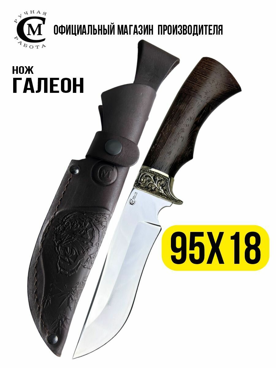 Нож из стали 95Х18 Галеон, рукоять венге, ножны из натуральной кожи: сравнение цен, характеристики, фото, актуальное наличие и цены.