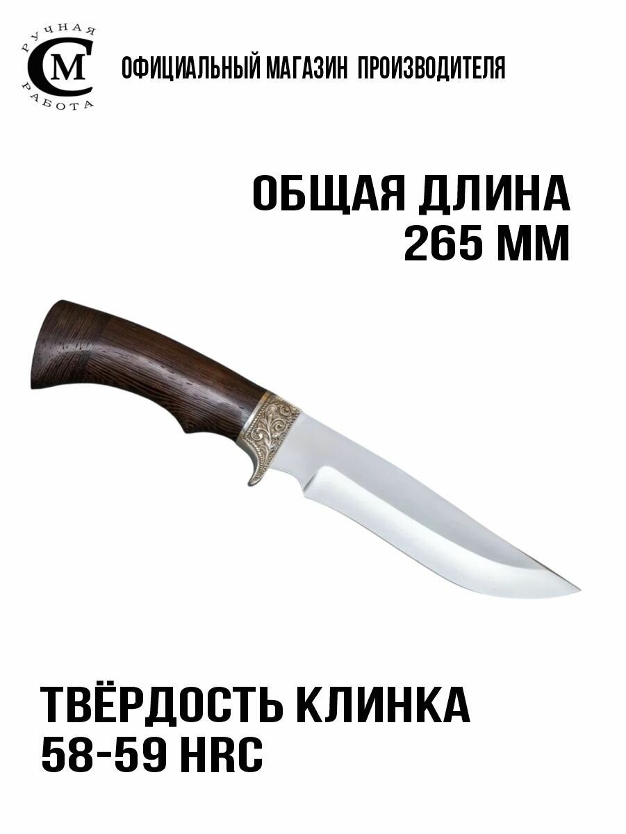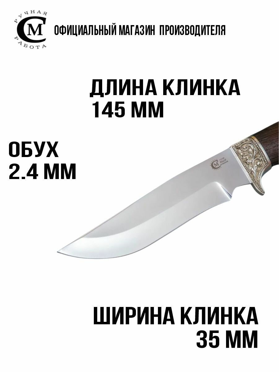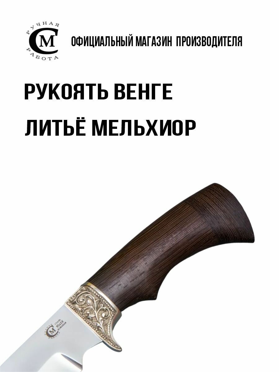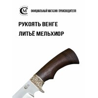 Нож из стали 95Х18 Мангуст, рукоять венге, литьё мельхиор, ножны кожа