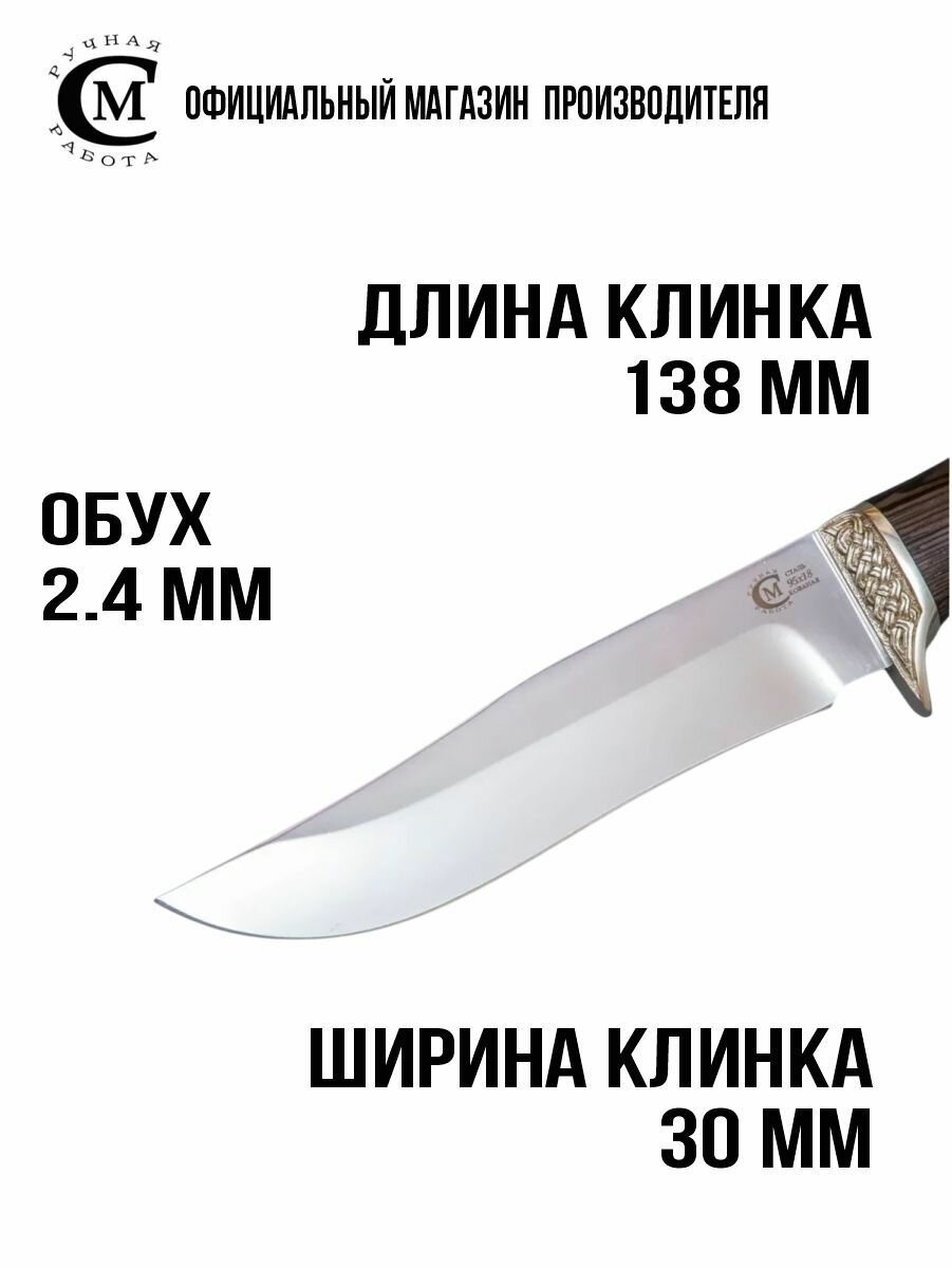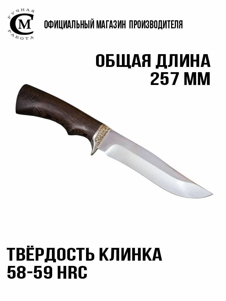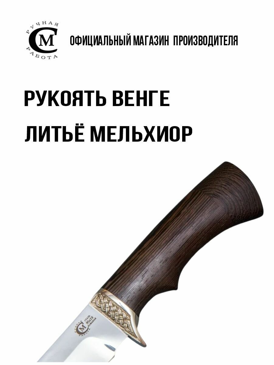 Нож из стали 95Х18 Мангуст, рукоять венге, литьё мельхиор, ножны кожа