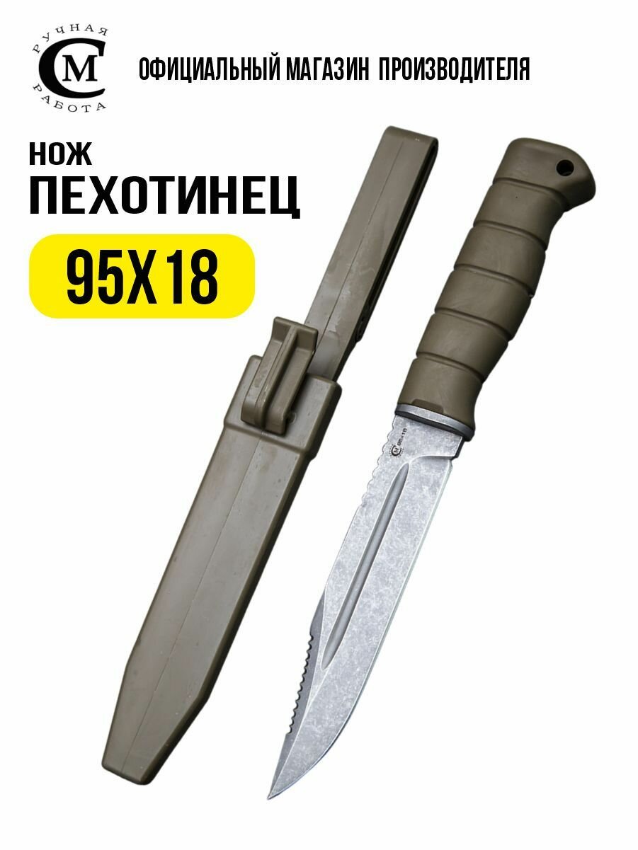 Нож из стали 95х18 Пехотинец, рукоять эластрон, чехол пластик: сравнение цен, характеристики, фото, актуальное наличие и цены.