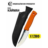 Купить Нож из стали Х12МФ Кайман, рукоять эластрон оранжевая, ножны кожа с доставкой по всей России.