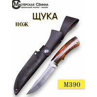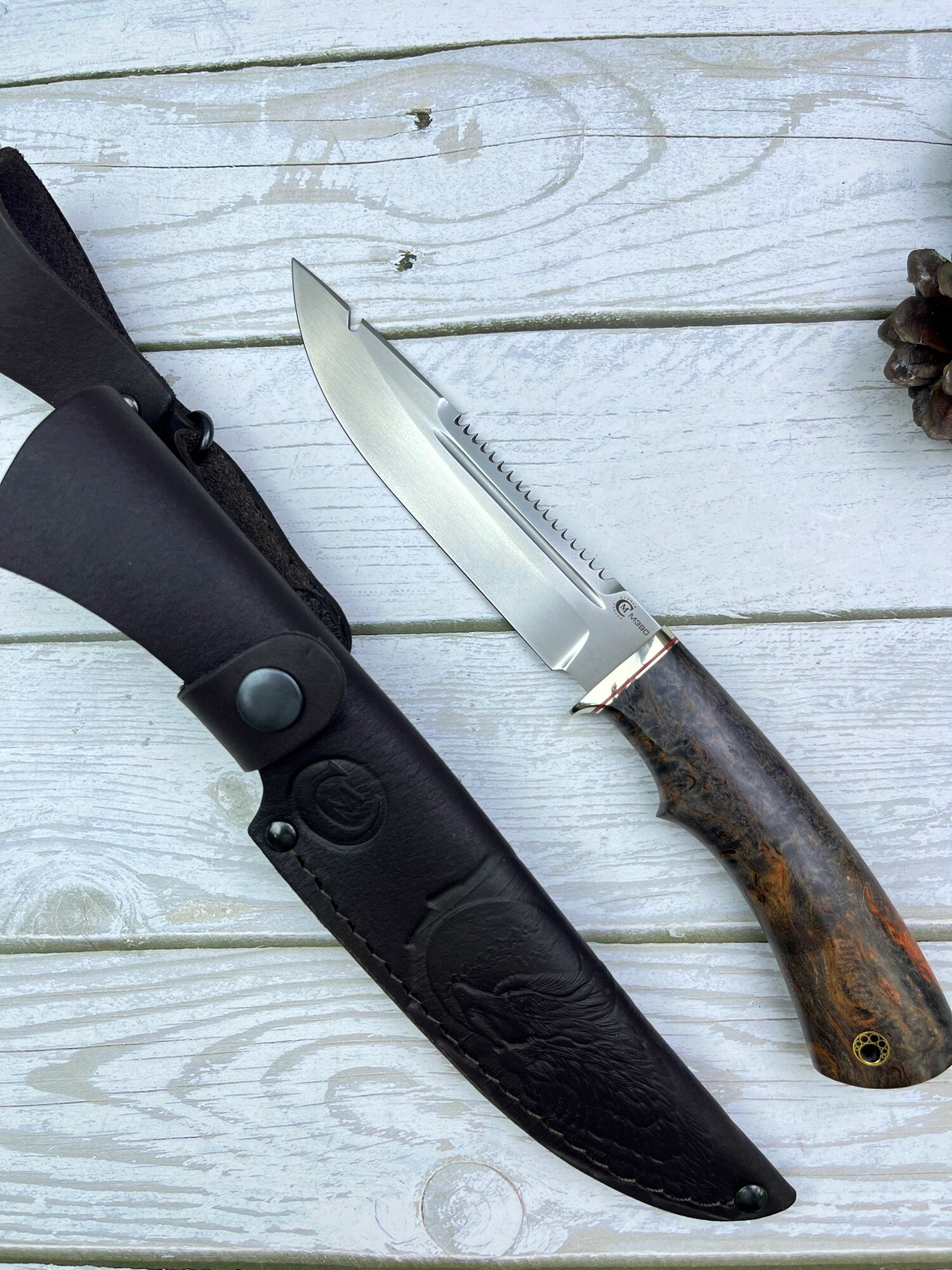 Нож из стали М390 Щука, рукоять литье мельхиор, стабилизированная карельская береза. Ножны из натуральной кожи. Официальный магазин производителя Мастерская Сёмина