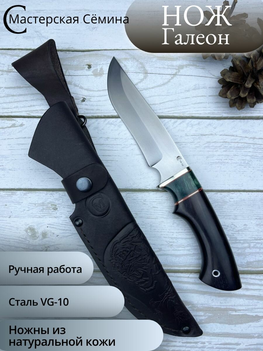 Купить Нож из стали VG-10 Галеон, рукоять литье мельхиор, вставка стабилизированная карельская береза, черный граб. Ножны из натуральной кожи. Официальный магазин производителя Мастерская Сёмина с доставкой по всей России. Нож из стали VG-10 Галеон, рукоять литье мельхиор, вставка стабилизированная карельская береза, черный граб. Ножны из натуральной кожи. Официальный магазин производителя Мастерская Сёмина: сравнение цен, характеристики, фото, актуальное наличие и цены.