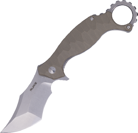 Это можно отнести и к новинке Ruike P881-W. Складной керамбит имеет темно-бежевый цвет рукояти и длину в раскрытом виде 20,2 сантиметра. Расцветка ножа неоднородная, с рисунком. Модель имеет удобную металлическую клипсу, которая позволяет крепить нож на одежду либо, к примеру, на рюкзак. У изделия есть круглый подшипник и замок по типу Liner lock. Этот замок защищает нож от случайного открытия либо непреднамеренного закрытия. Очень безопасный и надежный механизм, который значительно упростил использование ножей. В результате открывать и закрывать модель можно буквально одной рукой.