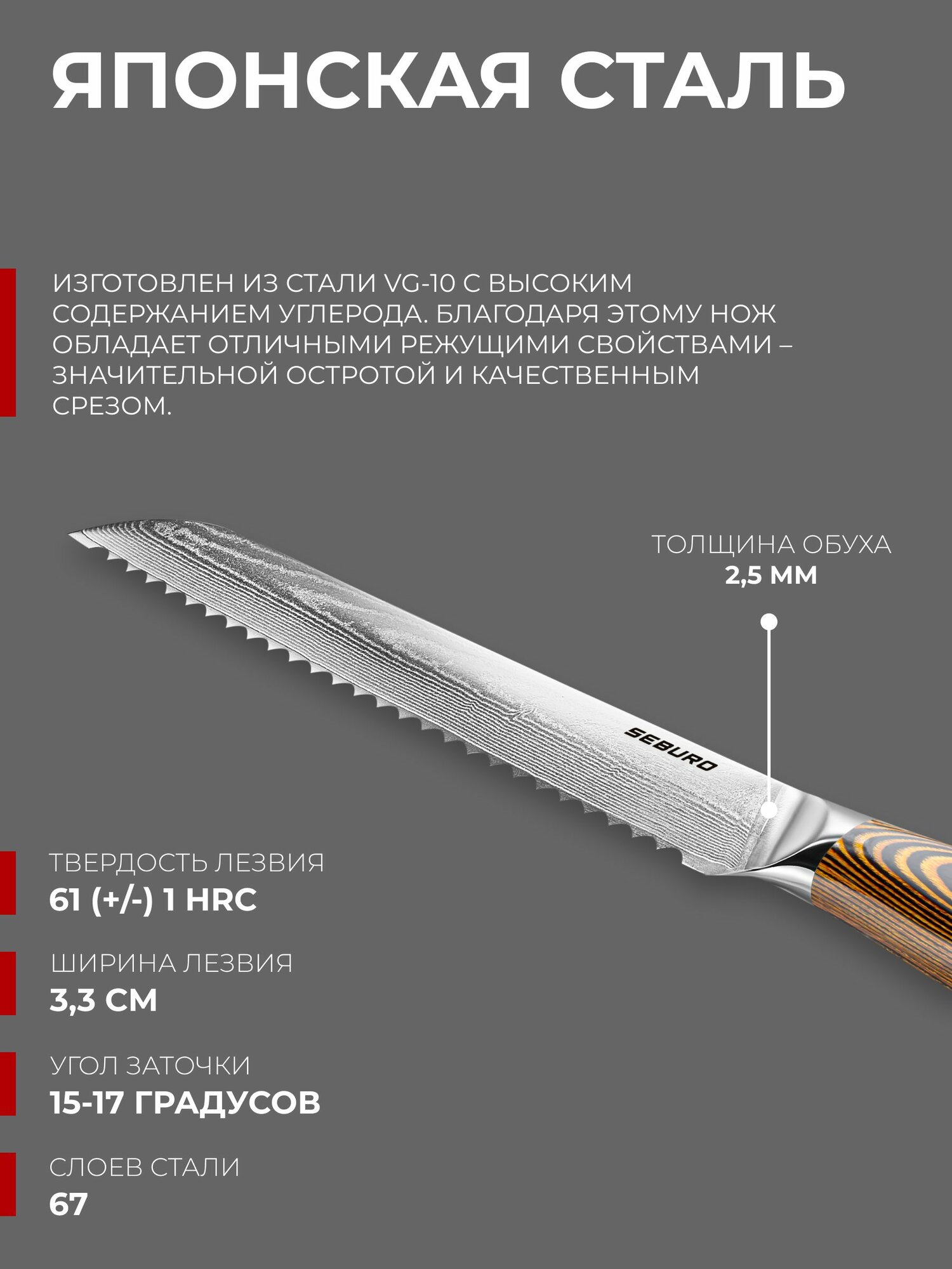 Купить Нож кухонный для хлеба из дамасской стали Seburo SUBAJA Damascus — профессиональный японский нож с доставкой по всей России. Нож кухонный для хлеба из дамасской стали Seburo SUBAJA Damascus — профессиональный японский нож: сравнение цен, характеристики, фото, актуальное наличие и цены.