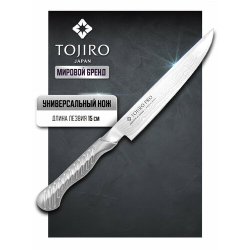 Нож Кухонный Универсальный TOJIRO (FD-703), длина лезвия 15,0 см, дамасская сталь VG-10, 37 слоев, рукоять сталь, Япония: сравнение цен, характеристики, фото, актуальное наличие и цены.