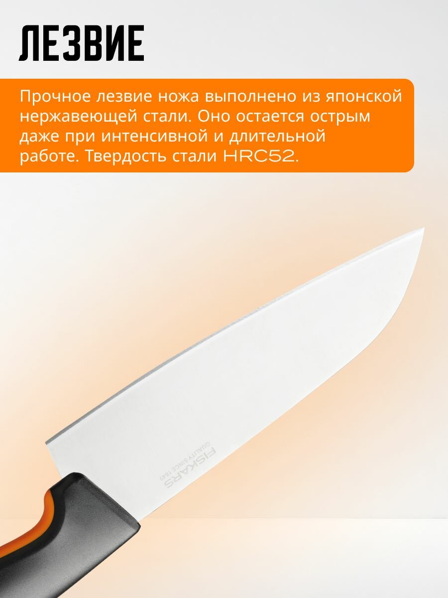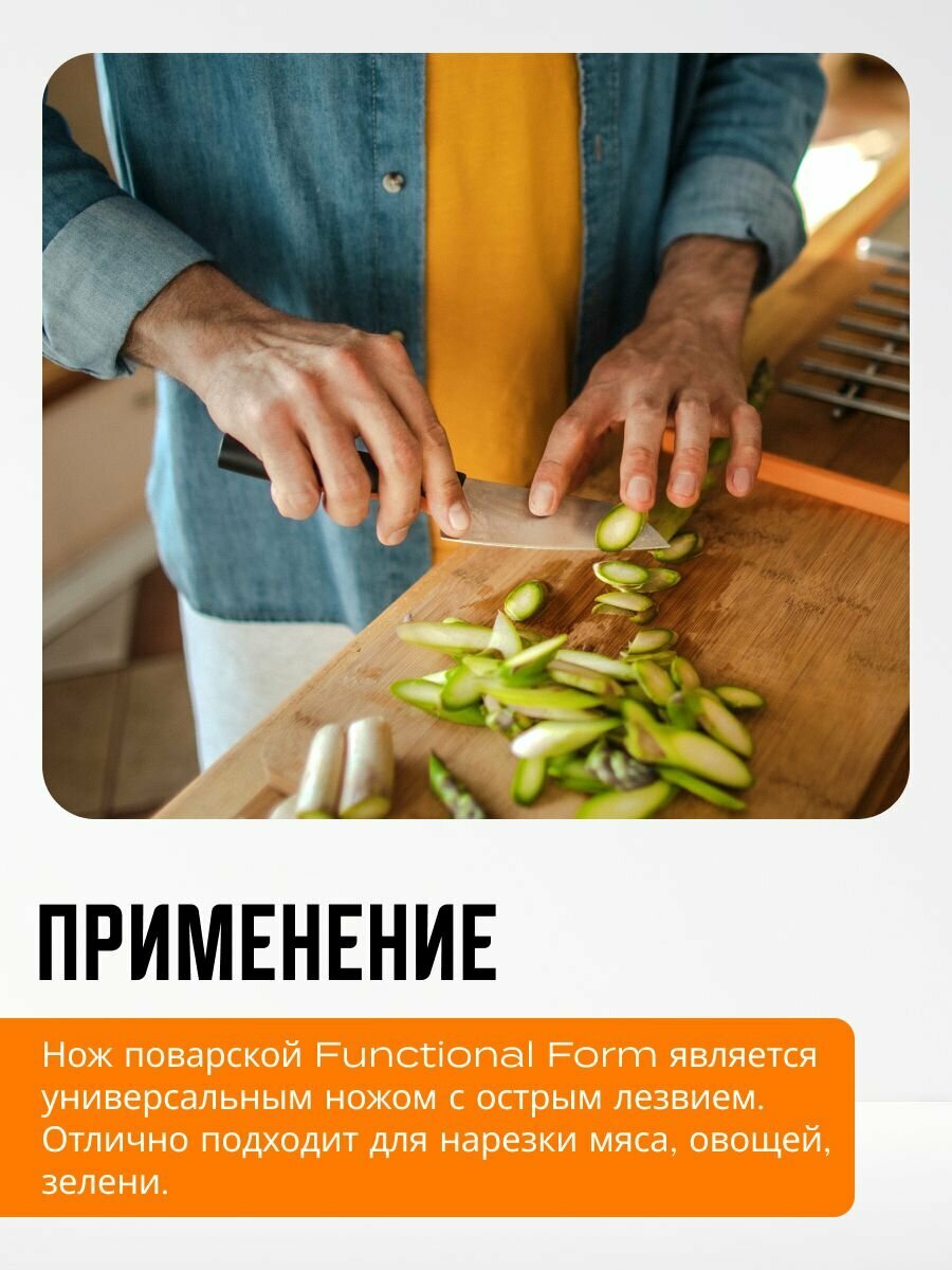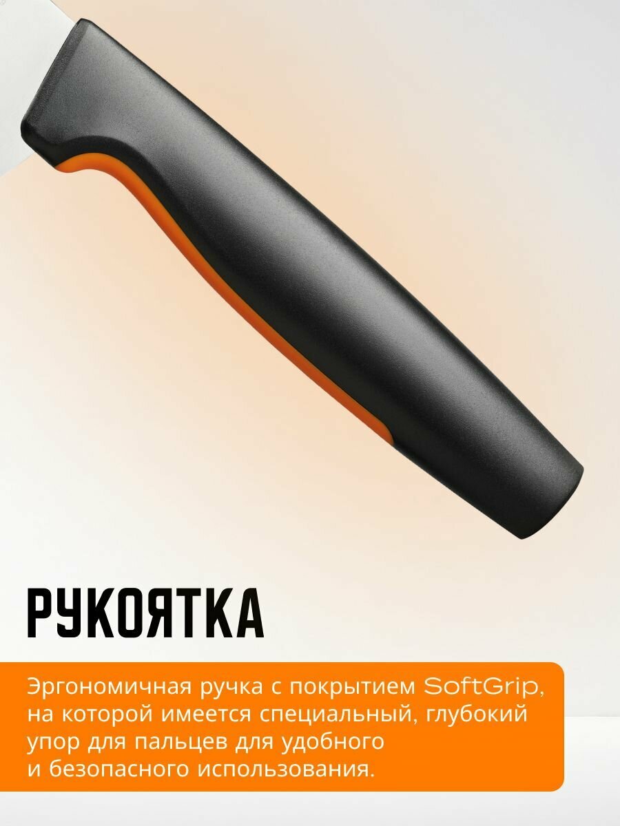 Нож поварской FISKARS Functional Form 12 см (1057541) - это высококачественный инструмент, разработанный для легкой ежедневной работы на кухне. Он отлично подходит для большинства задач и прост в уходе.