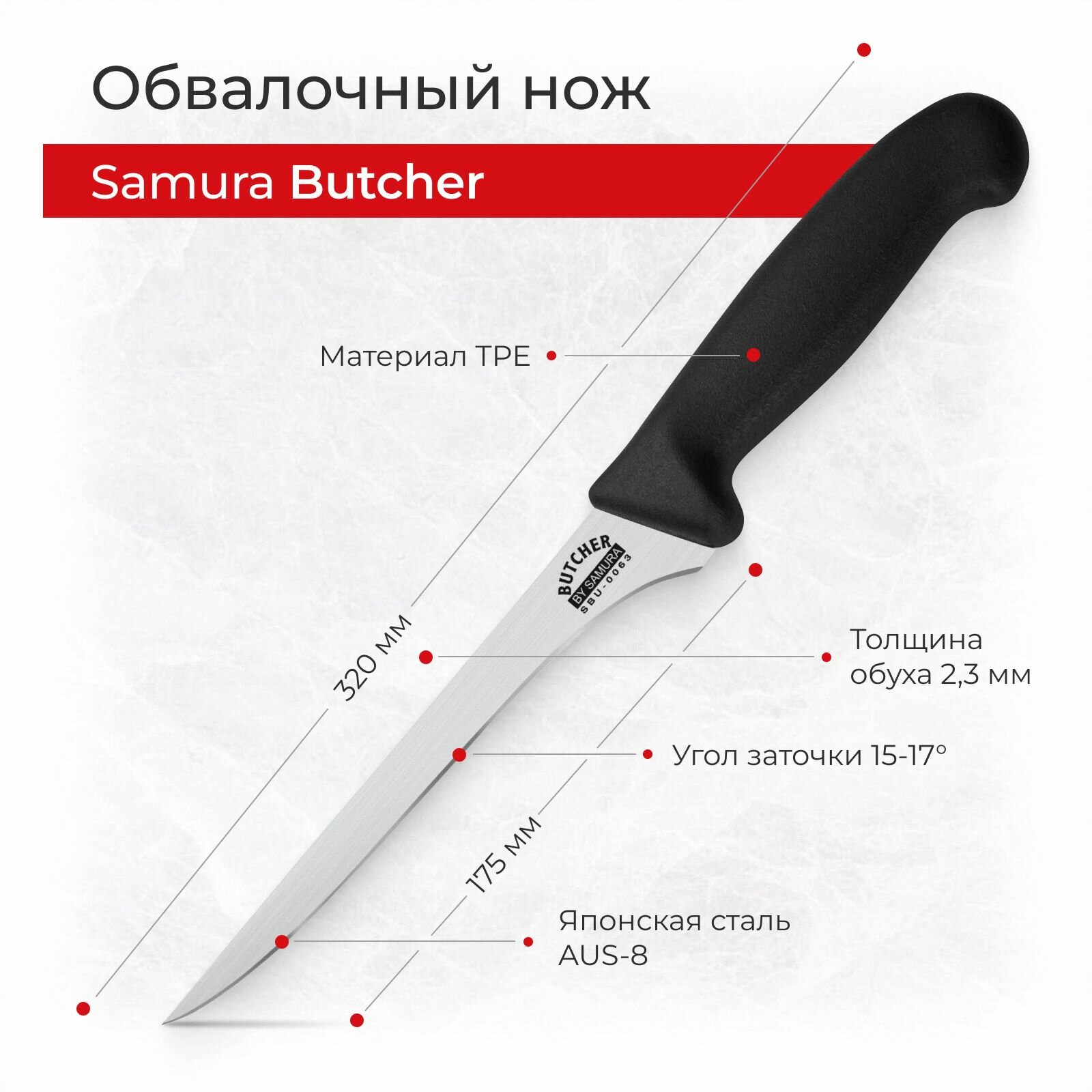 Нож кухонный поварской Samura Butcher обвалочный профессиональный SBU-0063: сравнение цен, характеристики, фото, актуальное наличие и цены.