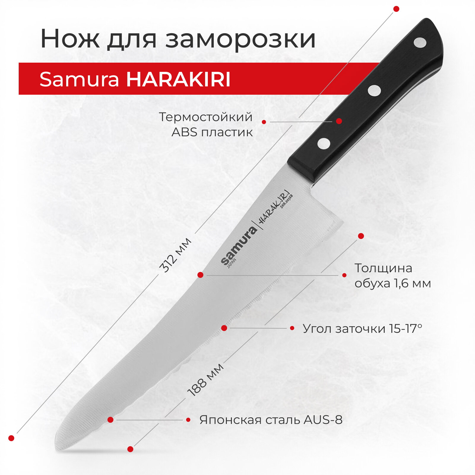 Нож кухонный поварской Samura Harakiri для заморозки профессиональный SHR-0056B: сравнение цен, характеристики, фото, актуальное наличие и цены.