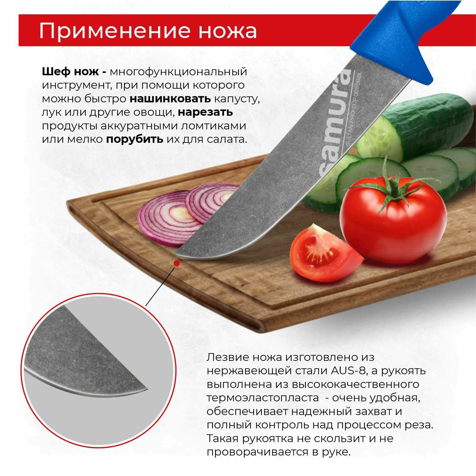 Нож кухонный поварской Samura Sultan Pro Шеф универсальный профессиональный SUP-0085BBL: сравнение цен, характеристики, фото, актуальное наличие и цены.