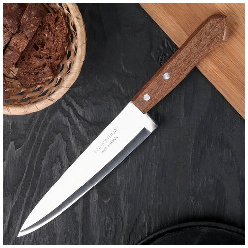 От качества посуды зависит не только вкус еды, но и здоровье человека. Нож кухонный поварской Universal, лезвие 20 см, сталь AISI 420, деревянная рукоять — товар, соответствующий российским стандартам качества. Любой хозяйке будет приятно держать его в руках. С нашей посудой и кухонной утварью приготовление еды и сервировка стола превратятся в настоящий праздник.