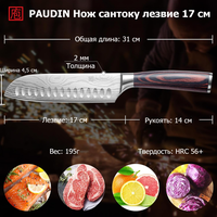 Нож кухонный PAUDIN профессиональный сантоку, универсальный для мяса и овощей, длина лезвия 17 см, HRC 56+: сравнение цен, характеристики, фото, актуальное наличие и цены.