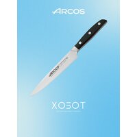 Запатентованная сталь NITRUM. Основой изделия является молибден-ванадиевая сталь Nitrum, запатентованная производителем. Ее свойства делают нож настоящим шедевром инженерного искусства — повышенная прочность, стойкость перед коррозией, сохранение заточки на длительный срок. Клинки ножей Arcos затачиваются под углом 15 градусов, что придает ножу идеальный рез. Эргономичная рукоятка. Рукоятки ножей изготовлены из полиоксиметилена и имеют эргономичную форму. Это инновационный материал, используемый для производства рукоятей ножей, он представляет собой усиленный оксидом кремния синтетический полимер, обладающий ударопрочными свойствами.