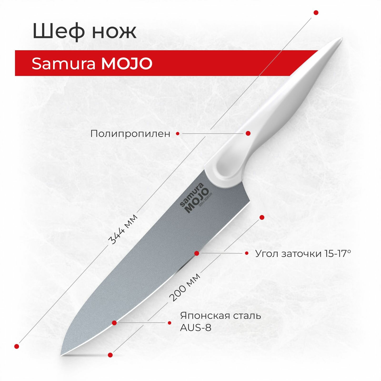 Нож кухонный поварской Samura MOJO Шеф универсальный профессиональный SMJ-0085W: сравнение цен, характеристики, фото, актуальное наличие и цены.