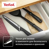 Для удобства хранения в комплекте предусмотрен чехол, который защищает лезвие и обеспечивает безопасность при хранении в кухонных ящиках. Нож Tefal Comfort K2213704 выполнен из высококачественных материалов, что гарантирует долговечность и надёжность на протяжении длительного времени. Благодаря простоте ухода за ним, даже после интенсивного использования, нож будет выглядеть как новый.