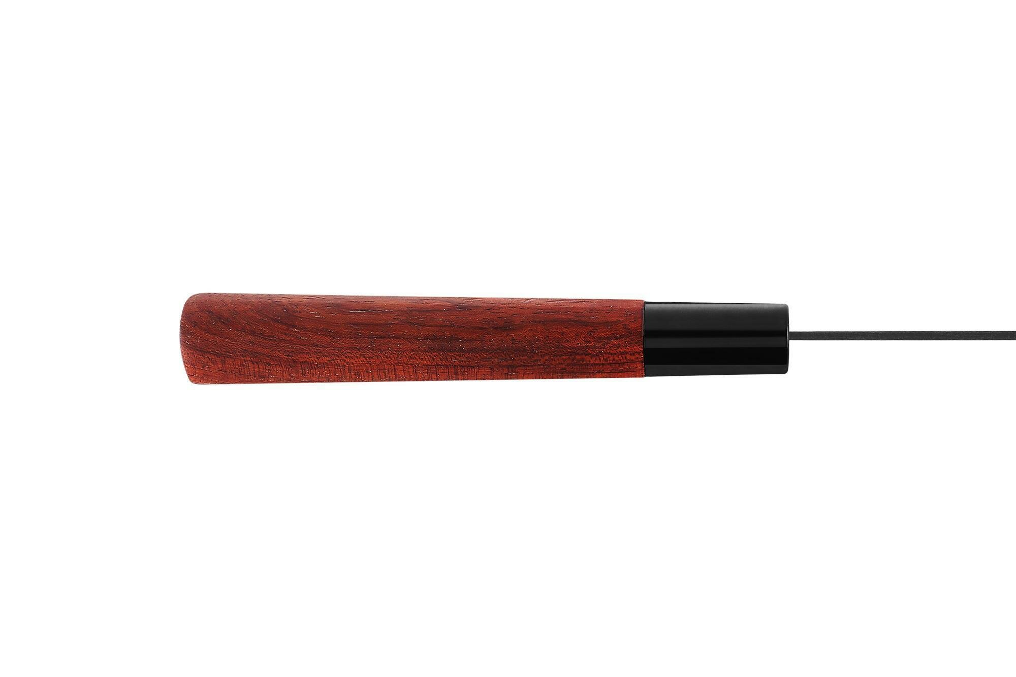 Янагиба (в переводе – “лист ивы”, чем объясняется интересная форма лезвия) – это японский нож, традиционно использующийся при работе с рыбным филе, а именно при приготовлении суши и сашими. Однако в Европе и на Западе он взял на себя функцию слайсера, с чем успешно справляется. Асимметричное сечение клинка твердостью 58 HRC с односторонней заточкой помогает аккуратно нарезать рыбу, мясо, сыр и овощи тонкими ломтиками, не давая им прилипать к боковой поверхности ножа. Его длинное лезвие позволит вам получить ровный разрез всего одним движением руки, а рукоять, выполненная из высокопрочной древесины, даст возможность испытать максимальный комфорт от работы на кухне.
