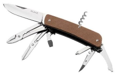 | Инструменты (функции) | винтовая отвёртка, клипса, ключ для спиц, консервный нож, кусачки, нож, ножницы, отвертка, открывалка для бутылок, пассатижи, пинцет, плоскогубцы, стеклобой, шило / кернер, штопор |