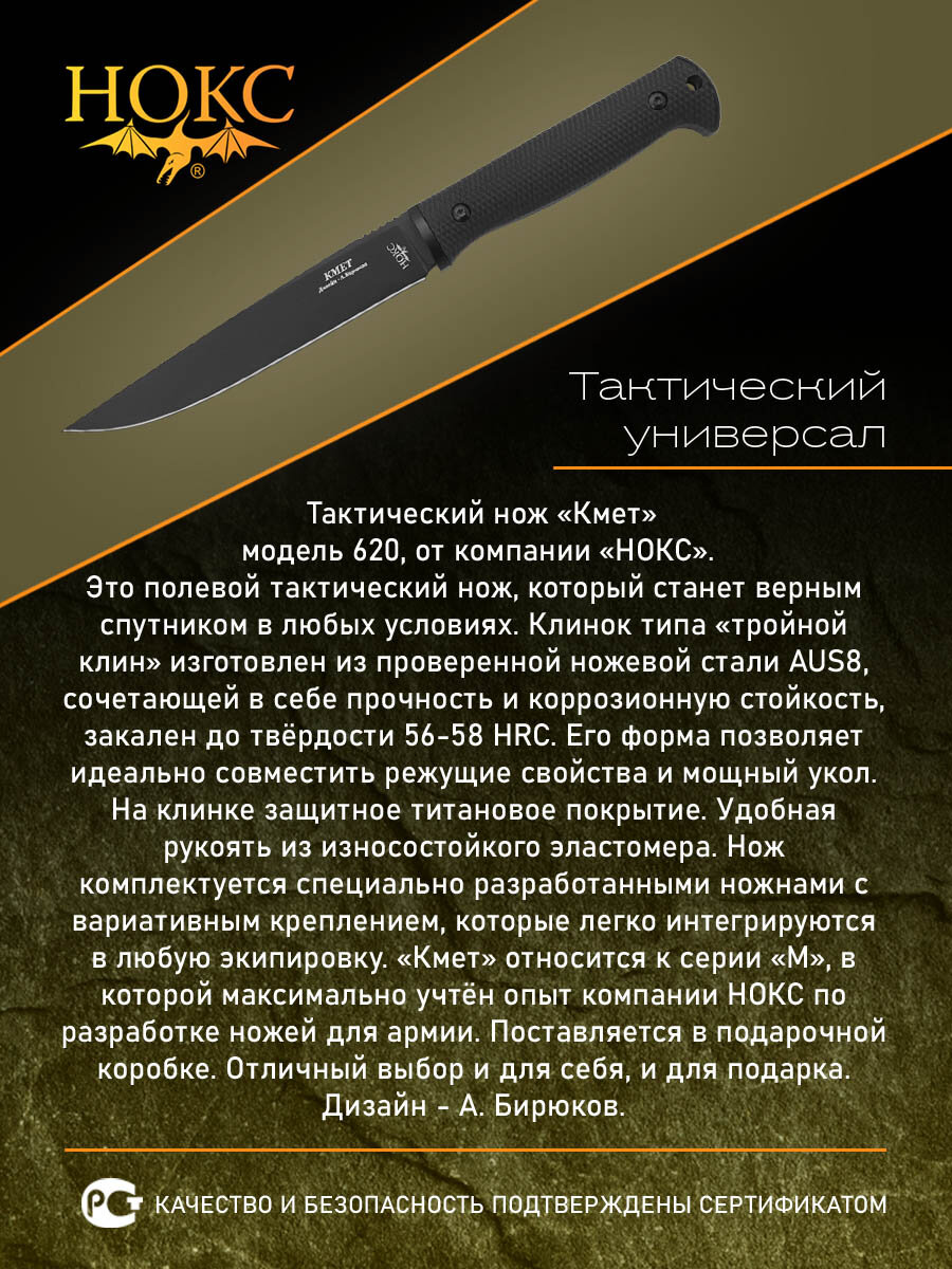 Нож НОКС 620-784651 Кмет в подарочной коробке, тактический универсал, сталь AUS8, титан покрытие: сравнение цен, характеристики, фото, актуальное наличие и цены.