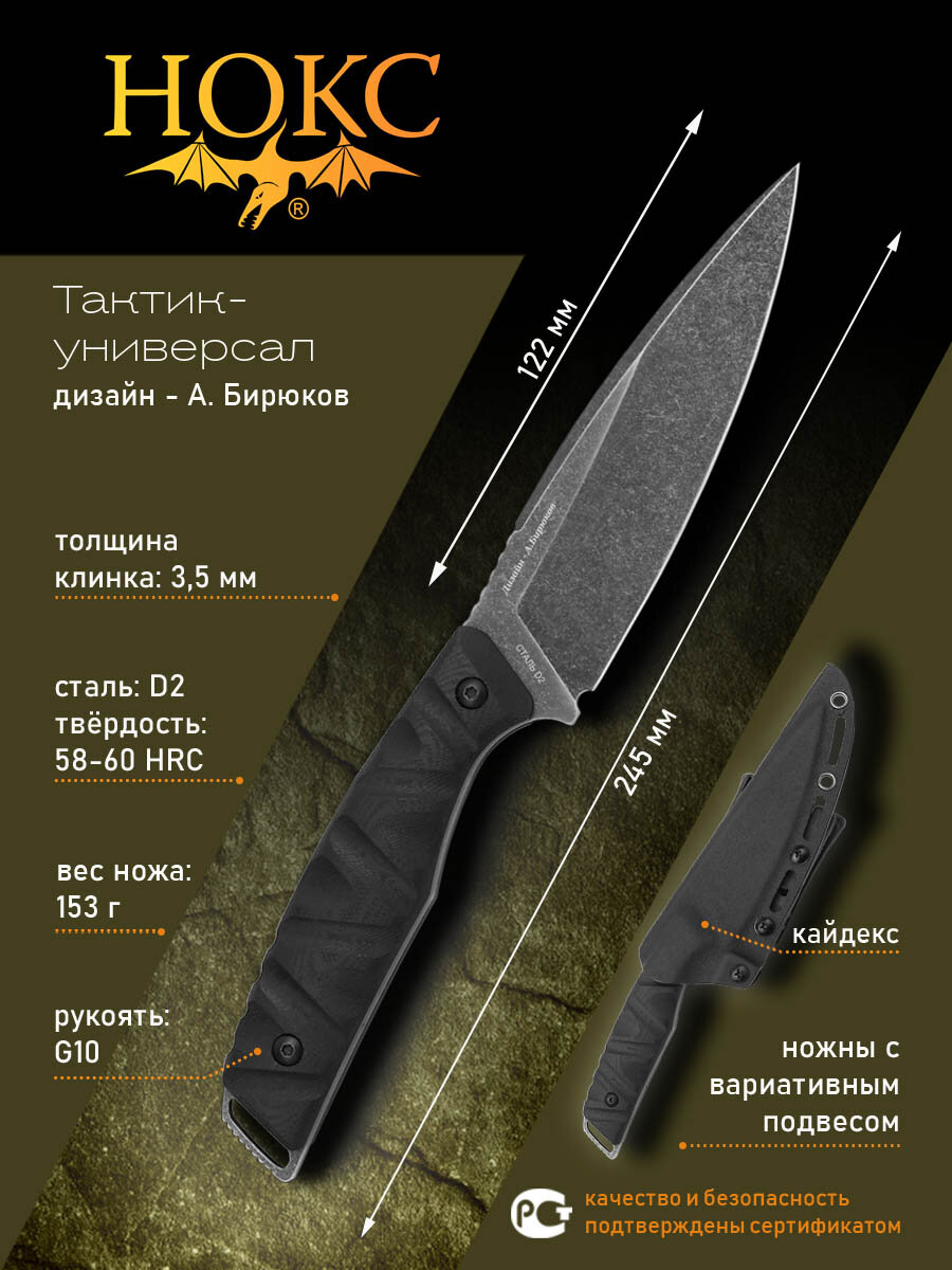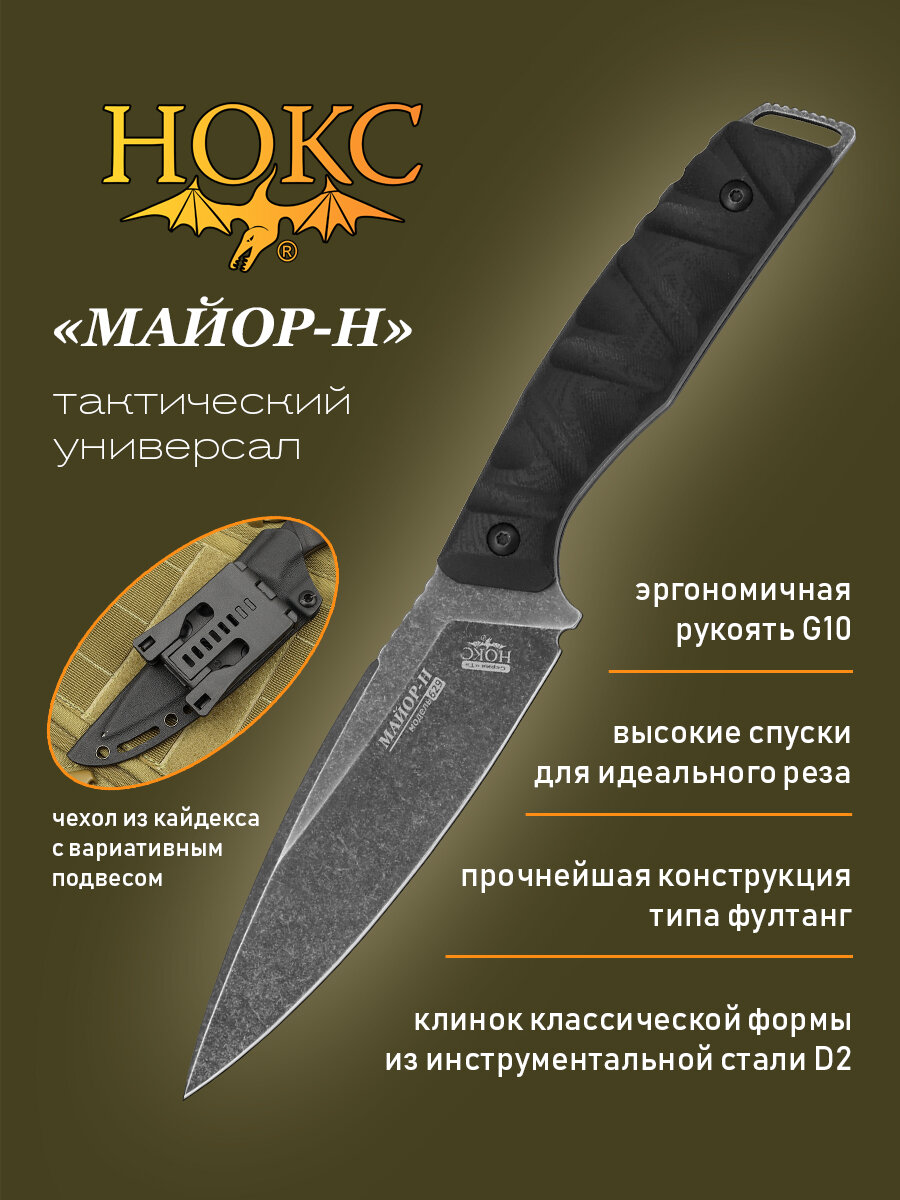 Нож НОКС Майор-Н модель 629 (629-500431), тактик-универсал, сталь D2, рукоять G10, чехол кайдекс: сравнение цен, характеристики, фото, актуальное наличие и цены.