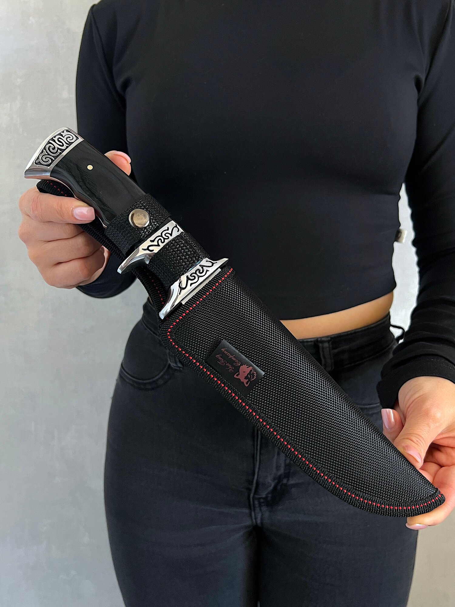 В комплект входит прочный, влагостойкий чехол, который защищает лезвие от повреждений. Для удобства есть возможность закрепить ножны на пояс с помощью петли.